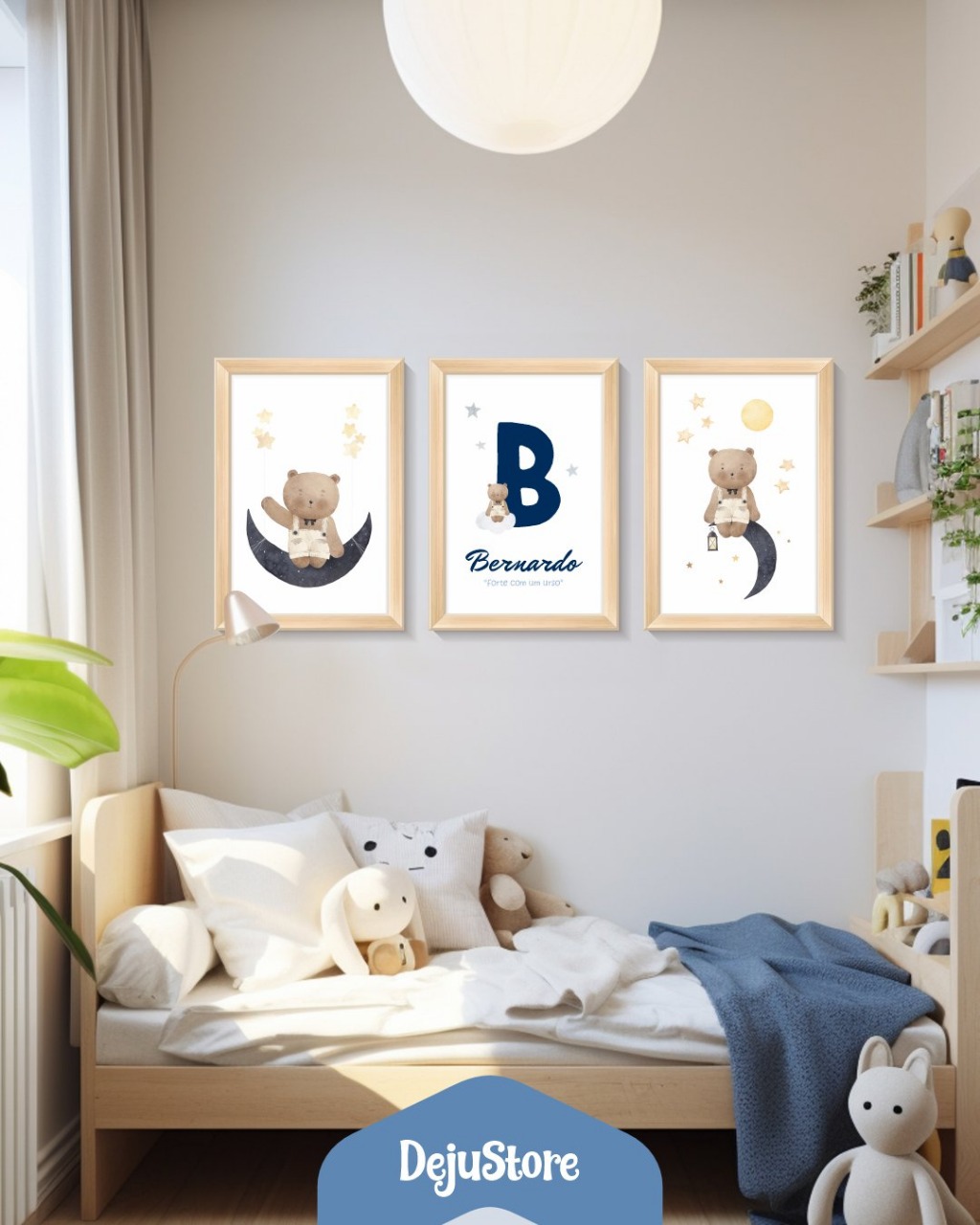 Kit Quadros: Ursinho nas Nuvens, Estrelas e Lua